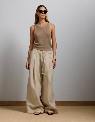 The Details Luxe linen plainweaveElastic drawstring waistFront pleatsSlanted side seam pocketsOversized back pocket Materials & Care 100% LinenMachine wash. Lay flat to...