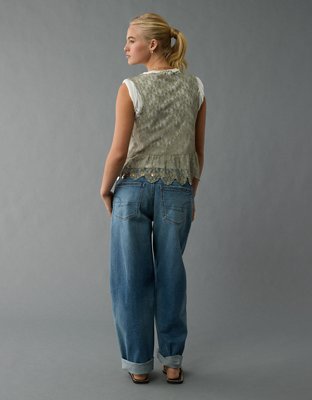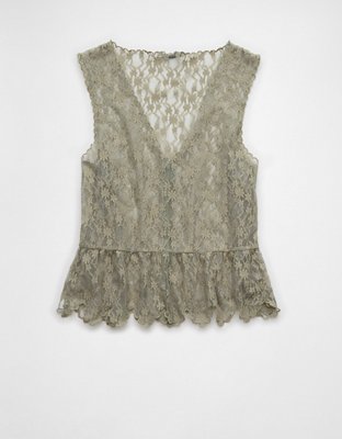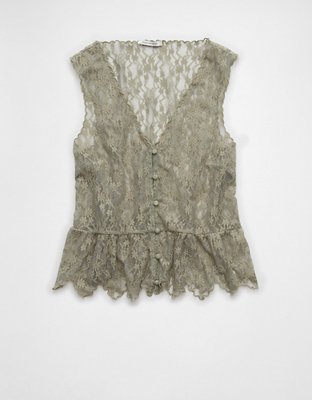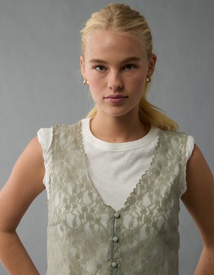The Details Lacy fabricV-neckButton-up front Materials & Care 92% Nylon 8% SpandexMachine washImported Size & Fit Boxy fitClassic lengthSleeveless