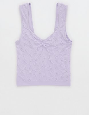 The Details Soft seamless fabricFloral deets with front ruching and scalloped trimPair it with the matching undies for the cutest set!Accessibility deets: tagless label to...
