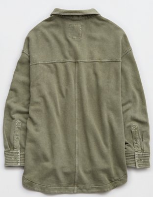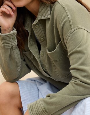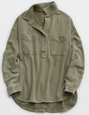 The Details Real Good Everyday FleecePolo neck with functional buttonsDouble chest pocketsSeaming deets on the collar cuffs and placketAccessibility deets: wide neck and...