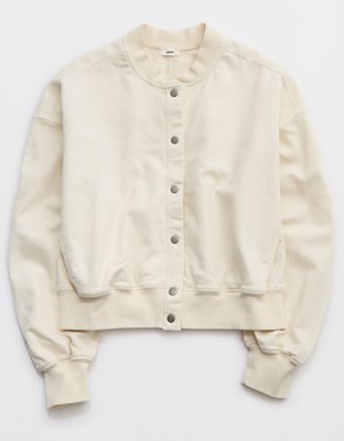 The Details Comfy woven fabricRibbed trim on the collar cuffs and hemFunctional snapsSeaming deetsWear it with the matching tube top and pants for the cutest setAccessibility...