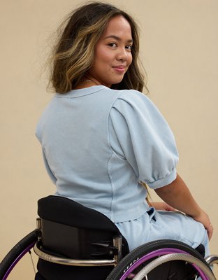 The Details Real Good Everyday FleeceScoop necklineRibbed trim deets at neck and cuffsShort puff sleevesRibbed side panelsAccessibility deets: over-the-head access for easy...
