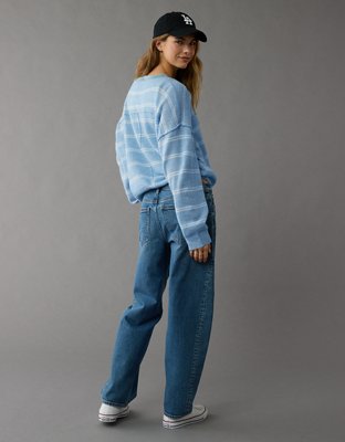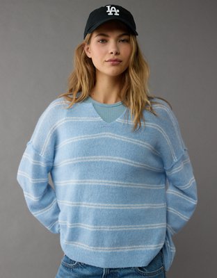The Details Long sleevesCrew neck with notchDrop shoulderRibbed cuffs & hemStripesThis sweater is Real Good: made with the planet in mind and a promise to continue to do better...