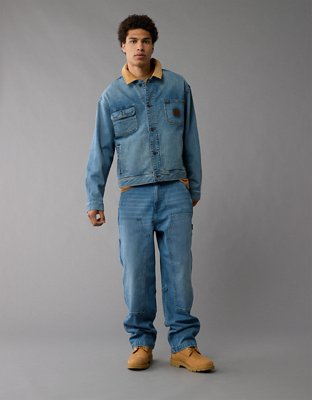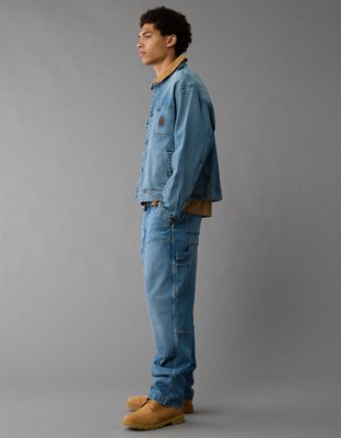 The Details Light rinse rigid denimHammer loop inspired by Timberland workwearBack pocket featuring quad stitch and a logo patchReinforced kneesMatches back to the Timberland x AE...