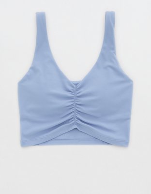 The Details THE LOOK: Gorgeous ruching. Buttery-soft Real Me® fabric.THE FEEL: Light support for all cup sizes. Built-in shelf with removable pads.THE MOVES: Made for low-impact...