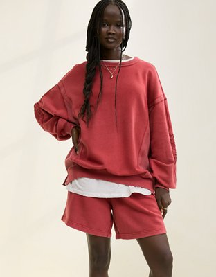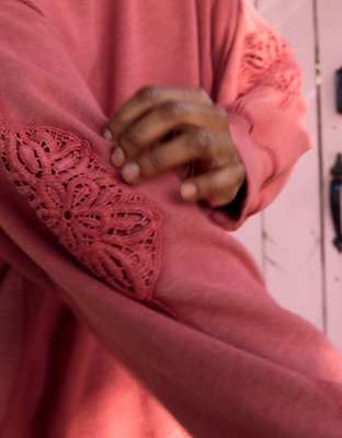 The Details Real Good Everyday FleeceRibbed trim on crewneck cuffs and hemBalloon sleeves and back crochet deetsReverse fabric side panelsAccessibility deets: over-the-head access...