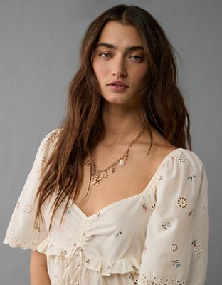 The Details Layered single necklaceClasp closure Materials & Care 40% Iron 30% Zinc 15% Acrylic 10% Other Fibers 5% PolyesterImported
