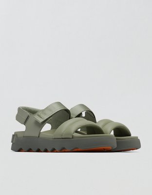 The Details Upper: Full grain leather upper with puffed forefoot detailing. Two points of adjustability - midfoot webbing strap and heel leather ankle strap with hook and loop...