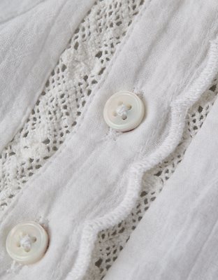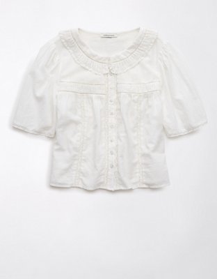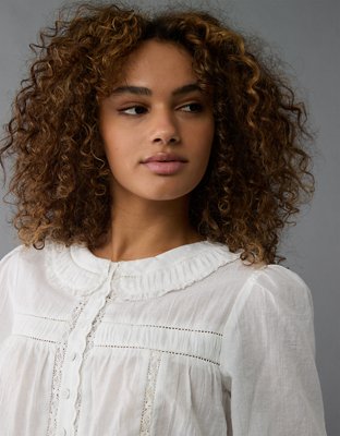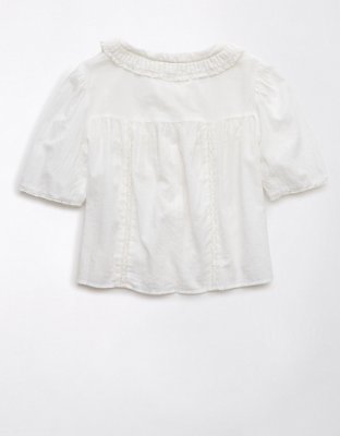 The Details Peter Pan collarButton-up frontPintuck constructionLace & ruffle details throughoutFlutter sleevesThis top is Real Good: Made with the planet in mind & a promise to...