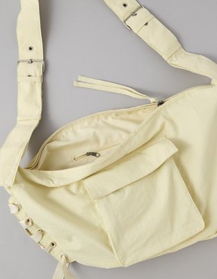 The Details Adjustable strap with grommet closuresZip-up closurePatch pocket on face of bagLace-up detail on side of bag Materials & Care 100% NylonImported