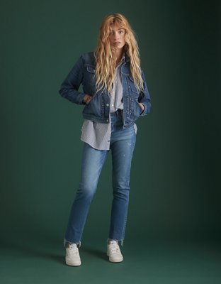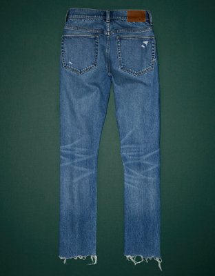 The Details Medium wash comfort stretch denim1-piece waistband5-pocket styling with hand-set rear pockets and handcrafted hinged bartacksSignature 77 details at back pocket and...