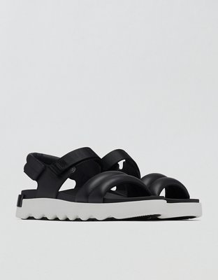 - Upper: Full grain leather upper with puffed forefoot detailing. Two points of adjustability - midfoot webbing strap and heel leather ankle strap with hook and loop closures. Synthetic leather lining.