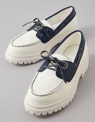The Details Chunky lug soleVegan leather upperClassic boat shoe rope detailsLace-up detailColorblock Materials & Care 100% PolyurethaneImported