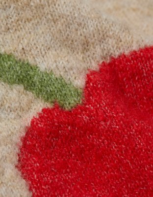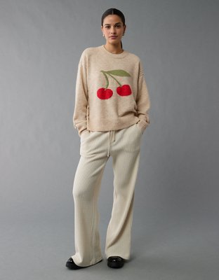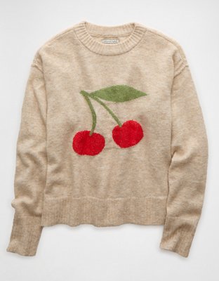 The Details Long sleevesCrew neckDrop shoulderRibbed collar cuffs & hemCherry graphicThis sweater is Real Good: made with the planet in mind and a promise to continue to do better...