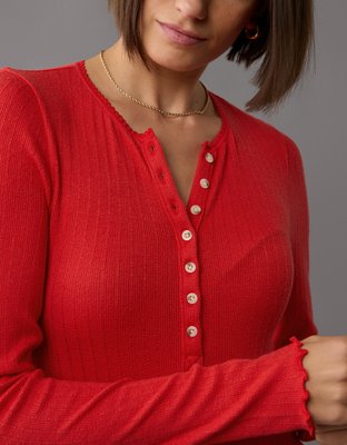 AE Long-Sleeve Lettuce Edge Lounge Romper