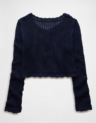 The Details Open sweater knitBoat neckButton-up frontFrilly details at collar cuffs & hemThis sweater is Real Good: Made with the planet in mind & a promise to continue to do...