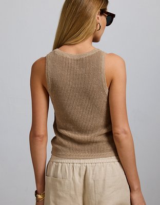 The Details Easy sweater tank knit in a linen yarnShaker stitchRibbed armholes and trim Materials & Care 100% LinenMachine wash. Lay flat to dry.Imported Size & Fit Classic...