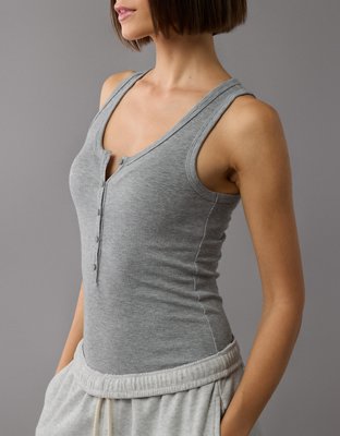 The Details Lightweight ribbed fabricScoop neckHenley button placketThong bottom for a clean look under clothesSnap closure at bottom Materials & Care 62% Polyester 33% Viscose 5%...