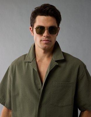 The Details Breezy seersucker fabricCamp collar designed to lay flatFull button-up frontChest pocketThis shirt is Real Good: made with the planet in mind Materials & Care 65%...