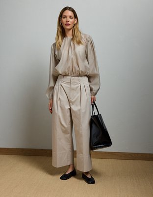 The Details Snappy twill fabricHollywood waistbandDouble pleatsBesom front and back pocketsHigh cuff hem Materials & Care 97% Cotton 3% ElastaneDry cleanImported Size & Fit High...