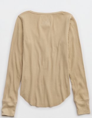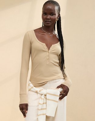 The Details Ultra-textured ribbed fabric that’s a little thicker (and a whole lot of cute)Henley neckline with functional buttonsCurved raw edge hem Materials & Care 55% Cotton...