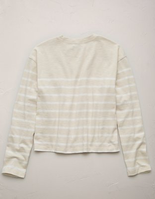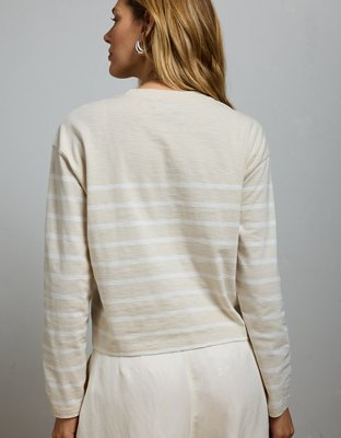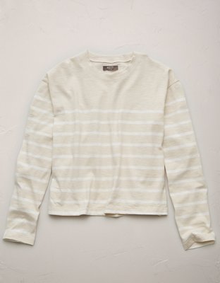 The Details Heavyweight organic cotton sluvYarn dye stripeWhip stitch at hem and cuffs Materials & Care 100% Organic CottonMachine washImported Size & Fit Boxy fitCropped...