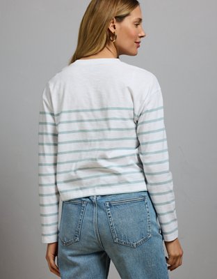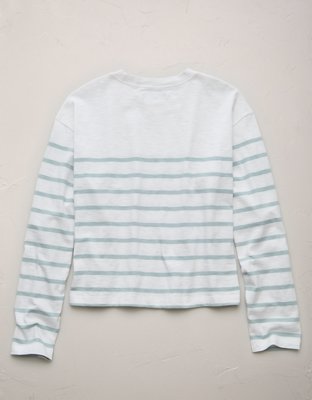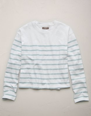The Details Heavyweight organic cotton sluvYarn dye stripeWhip stitch at hem and cuffs Materials & Care 100% Organic CottonMachine washImported Size & Fit Boxy fitCropped...