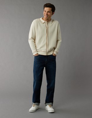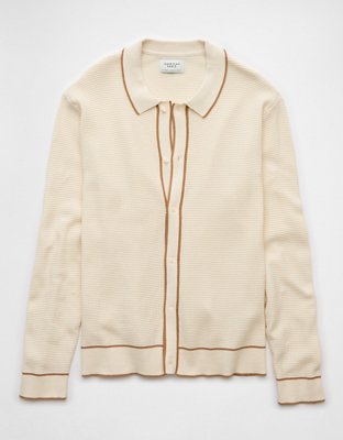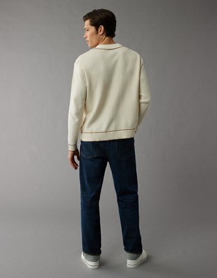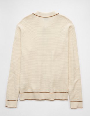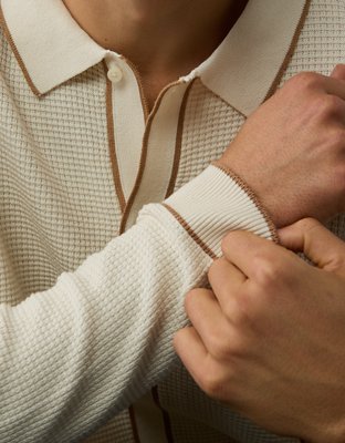 AE Long-Sleeve Tipped Waffle Sweater Polo Shirt