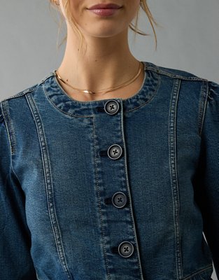The Details Denim with added stretchCollarless crew neckButton-up frontVertical welt pocketsCinched waistThis is Real Good: Made with the planet in mind & a promise to continue to...
