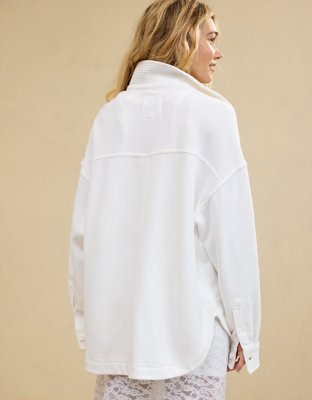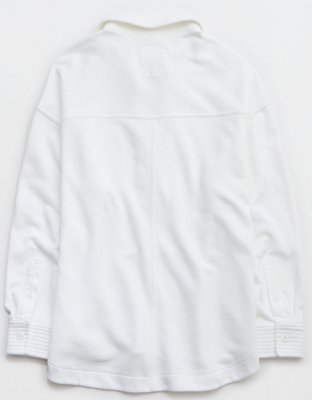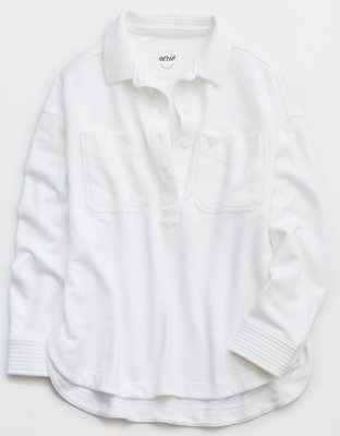 The Details Real Good Everyday FleecePolo neck with functional buttonsDouble chest pocketsSeaming deets on the collar cuffs and placketAccessibility deets: wide neck and...