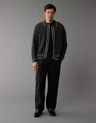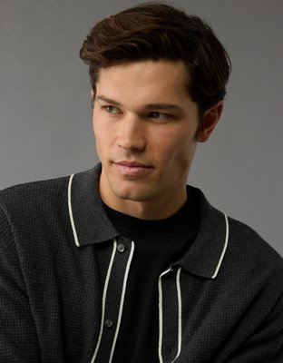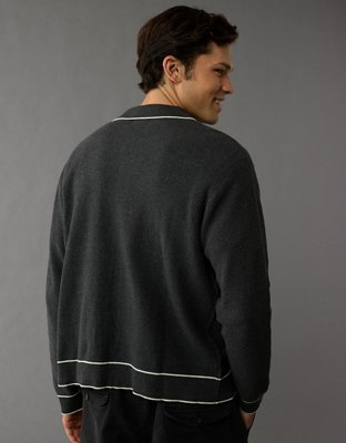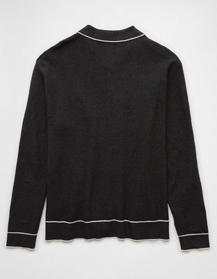 AE Long-Sleeve Tipped Waffle Sweater Polo Shirt