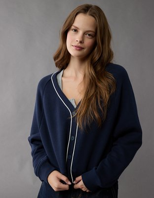 The Details Super soft fleeceV-neckButton-up frontContrast tippingRibbed collar cuffs & hemThis is Real Good: Made with the planet in mind & a promise to continue to do better....