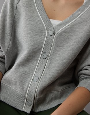 The Details Super soft fleeceV-neckButton-up frontContrast tippingRibbed collar cuffs & hemThis is Real Good: Made with the planet in mind & a promise to continue to do better....