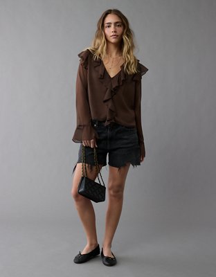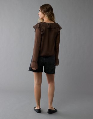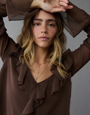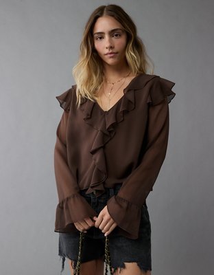 AE Chiffon Bell Sleeve Ruffle Blouse