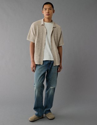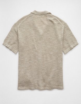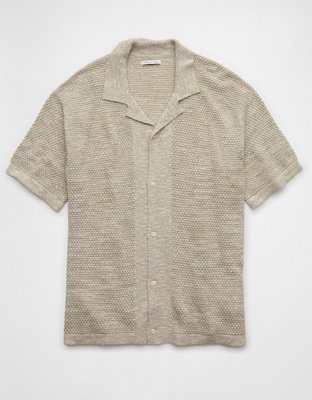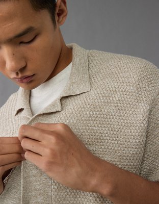 The Details Super soft textured sweater knitCamp collarButton-up front Materials & Care 95% Cotton 5% LinenMachine washImported Size & Fit Standard fit & lengthShort sleeves