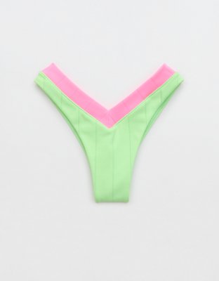The Details Ribbed fabricV cut at waist front & back Materials & Care 85% Nylon 15% ElastaneMachine washImported Size & Fit High cut legCheekiest booty