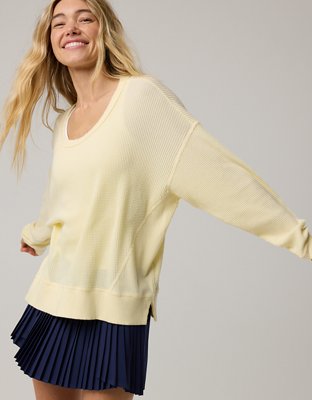 The Details THE LOOK: Ultra-textured waffle knit.THE FEEL: Soft cotton with extra str-e-e-e-tch.THE MOVES: Throw-on-and-go!Accessibility deets: over-the-head access for easier...