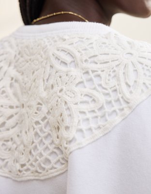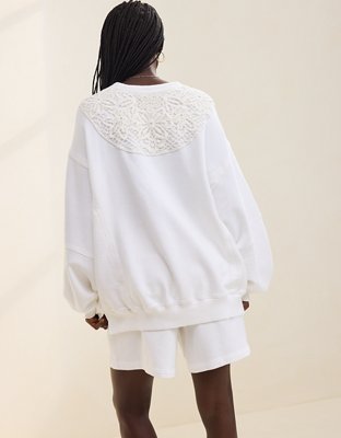 Aerie Keep It Light Crochet Crew Sweatshirt