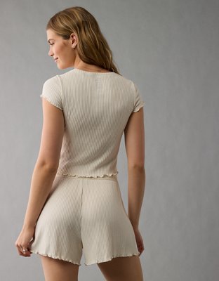 The Details Ribbed plush PJ fabricBaby tee & elastic waist shortsInseam: 4" Materials & Care 95% Polyester 5% ElastaneMachine washImported