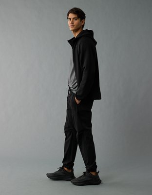 The Details Bi-stretch sweat-wicking nylonElastic drawstring waistFront pockets with zipper closuresHidden cell phone pocketElastic cuffs Materials & Care 88% Nylon 12%...