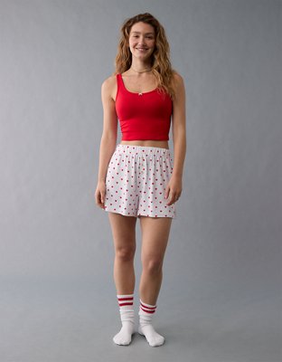 The Details White plush tank with tiny bow detailShorts with hearts patternWhite socks with sporty stripe detail Materials & Care 95% Polyester 5% ElastaneMachine washImported...