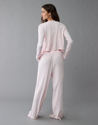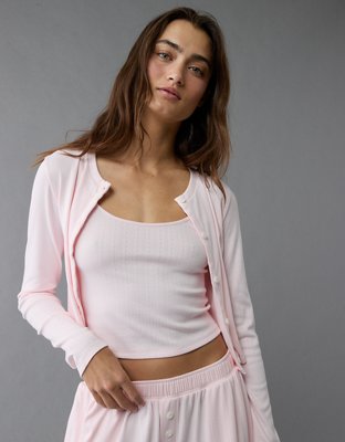 The Details Super soft & plush pointelle fabricCardigan with button-up front closureTank top with scoop neckHigh-waisted wide-leg pj pant with faux fly button closure Materials &...