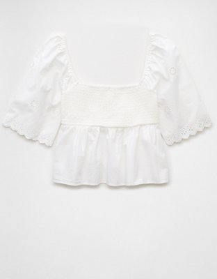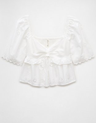 AE Flutter Sleeve Eyelet Babydoll Blouse