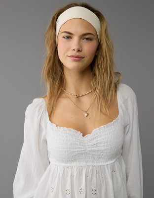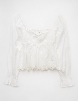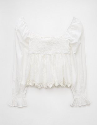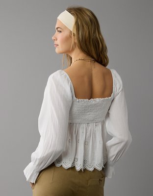 The Details Balloon sleevesSmocked top with cinched bustFlyaway babydoll midriffEyelet detailsThis is Real Good: Made with the planet in mind & a promise to continue to do better....