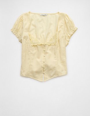 The Details Cap sleevesPlunge v-neck with lace detailCorset-inspired construction in bodice with hook and eye closureV hem Materials & Care 100% CottonMachine washImported Size &...