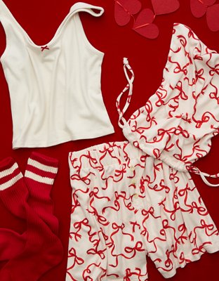 The Details White plush tank with tiny bow detailsShorts with ribbon patternRed socks with sporty stripe details Materials & Care 95% Polyester 5% ElastaneMachine washImported...