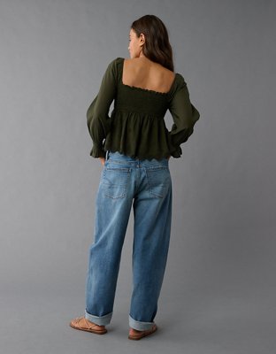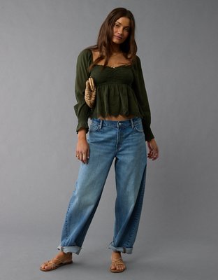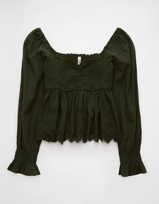 The Details Balloon sleevesSmocked top with cinched bustFlyaway babydoll midriffEyelet detailsThis is Real Good: Made with the planet in mind & a promise to continue to do better....