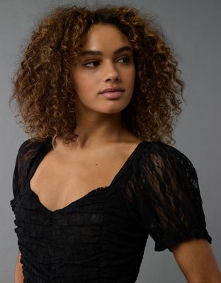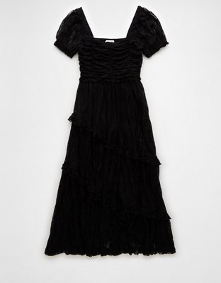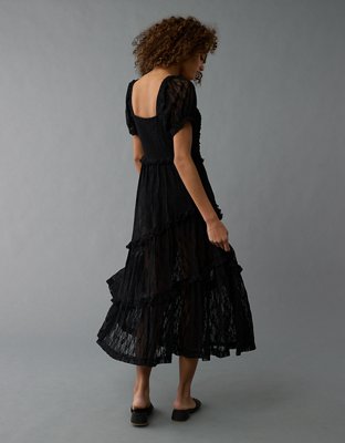 The Details Puff sleevesCinched sweetheart neckCinched bodiceAsymmetrical tiered skirtLace throughout Materials & Care 94% Nylon 6% ElastaneMachine washImported Size & Fit Fit &...