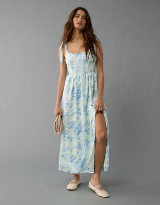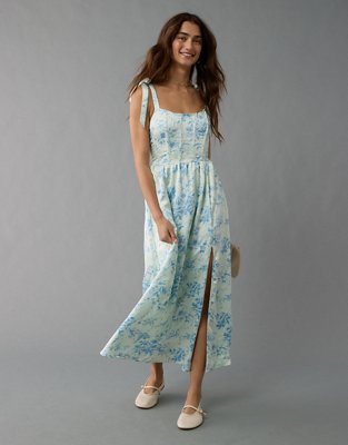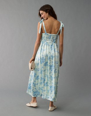 AE Corset Tie Strap Floral Midi Dress