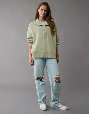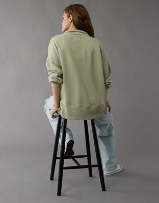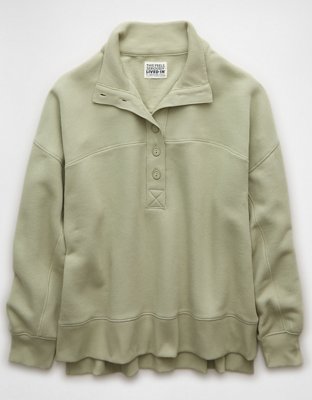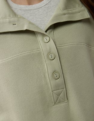 The Details Ultra-soft & cozy fleeceQuarter-button henley mock neckLong sleevesAll-over exposed seam detailingSplit hemThis sweatshirt is Real Good: made with the planet in mind...